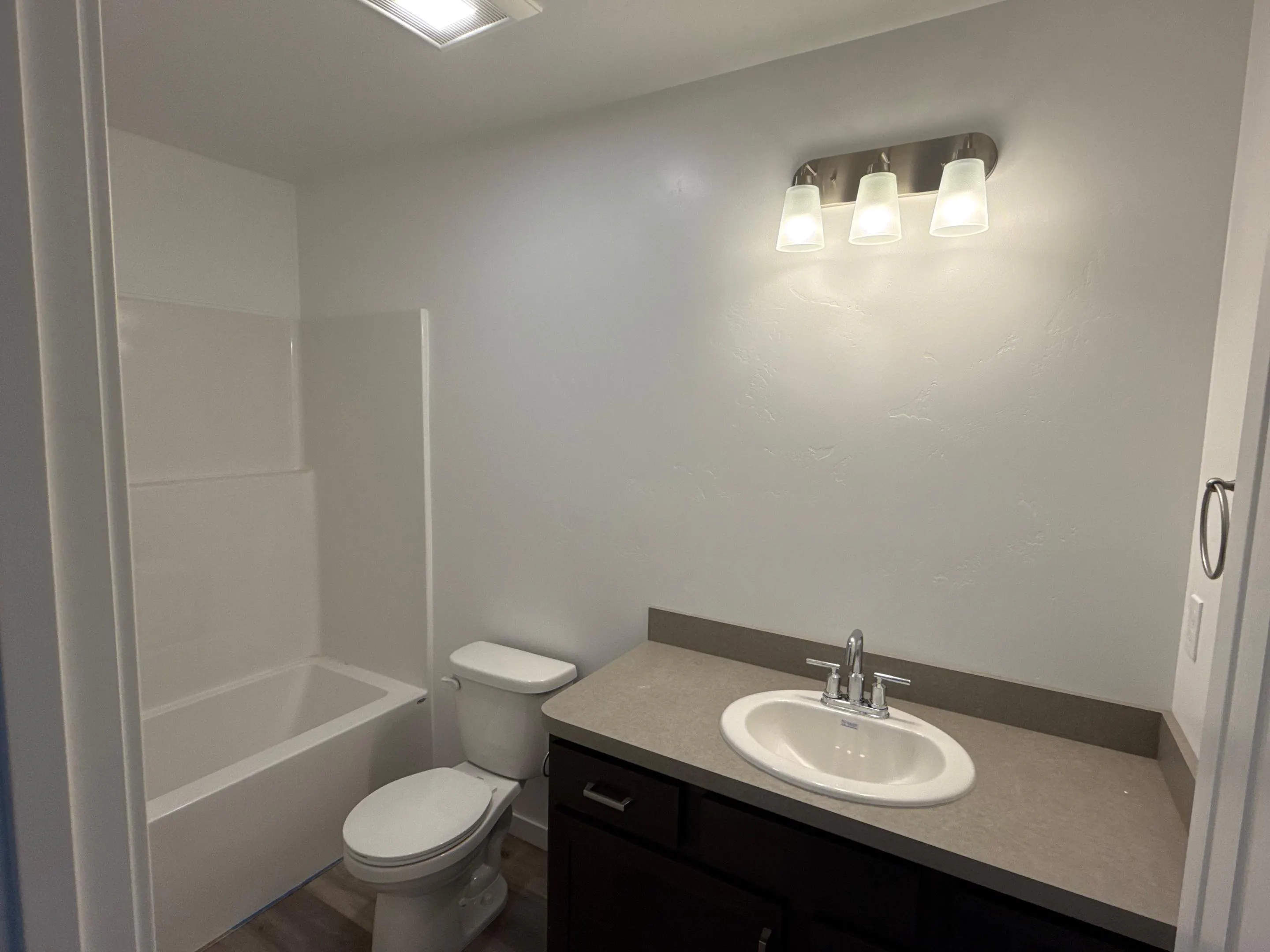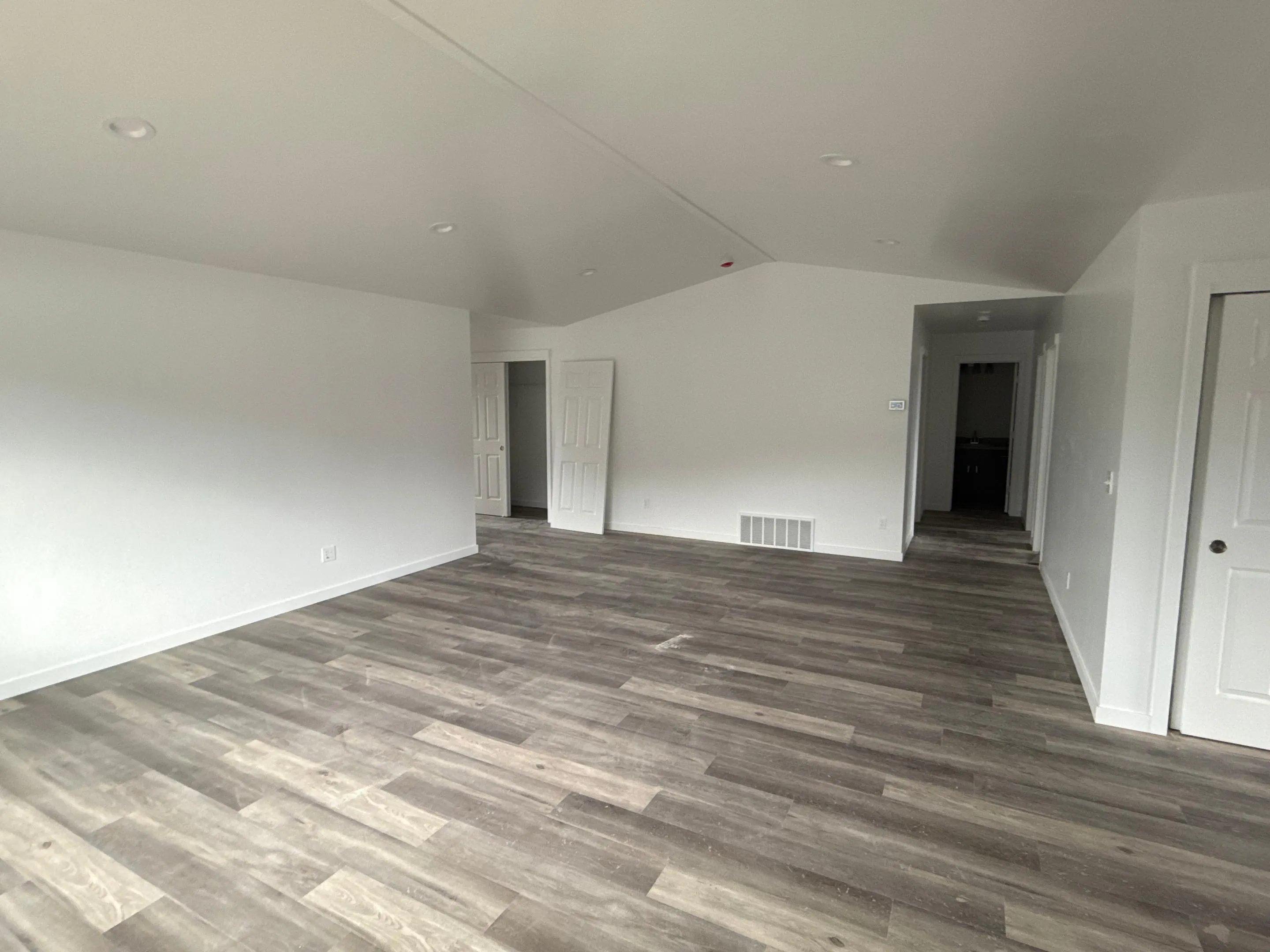The private primary suite offers a spacious walk-in closet and a well-appointed bathroom accented with satin nickel accessories, creating a comfortable retreat. Two additional bedrooms provide flexibility for guests, office space, or hobbies, while a convenient laundry room adds to the home's everyday ease. Throughout the main living areas, you'll find luxury vinyl flooring that is 100% waterproof, highly durable, and resistant to scratches, stains and fading, while plush carpet in the bedrooms adds warmth and comfort.