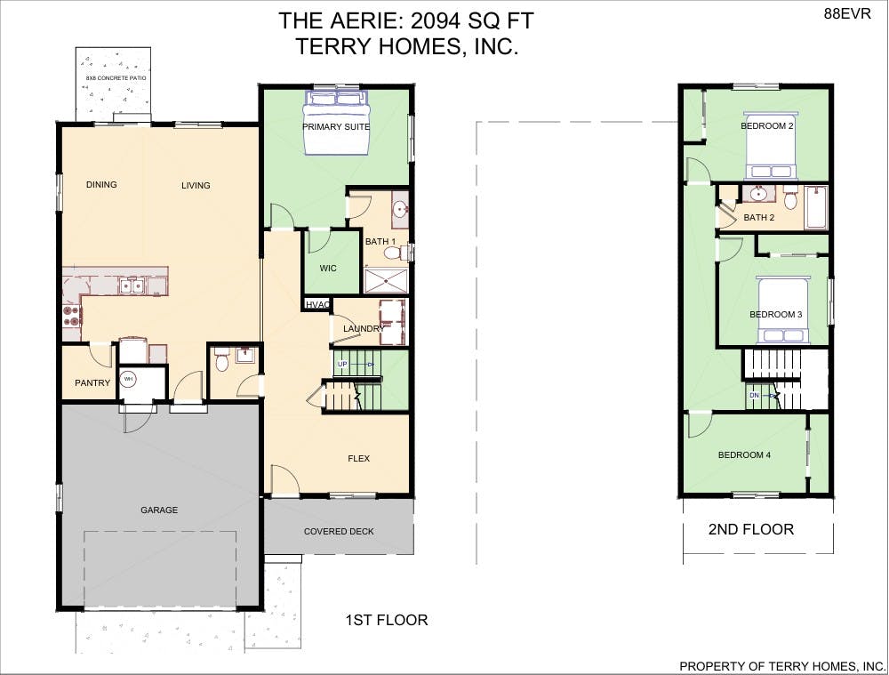 The primary suite, located on the main floor, includes a private bath and walk-in closet for added comfort and convenience. A main-level laundry room simplifies daily routines.