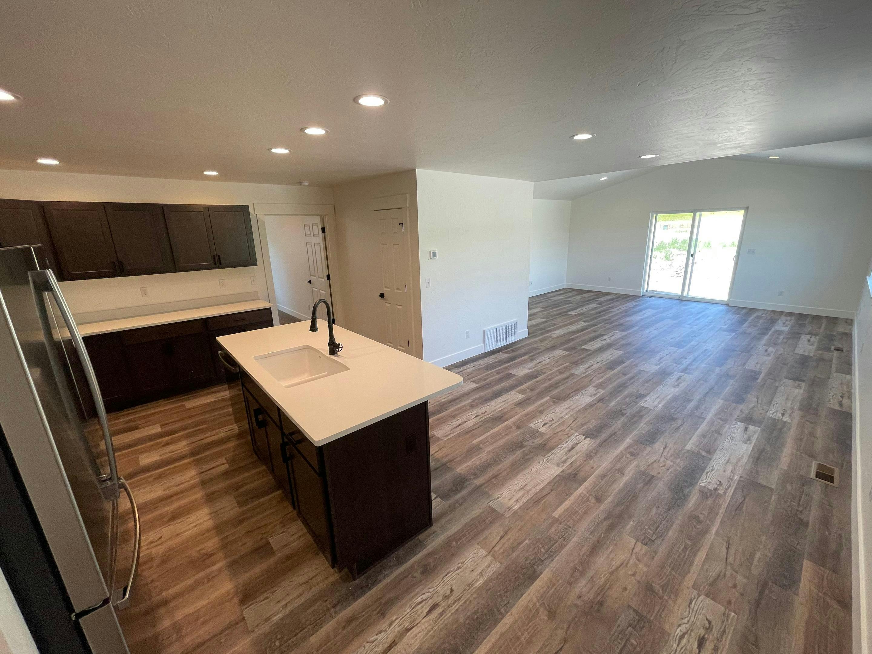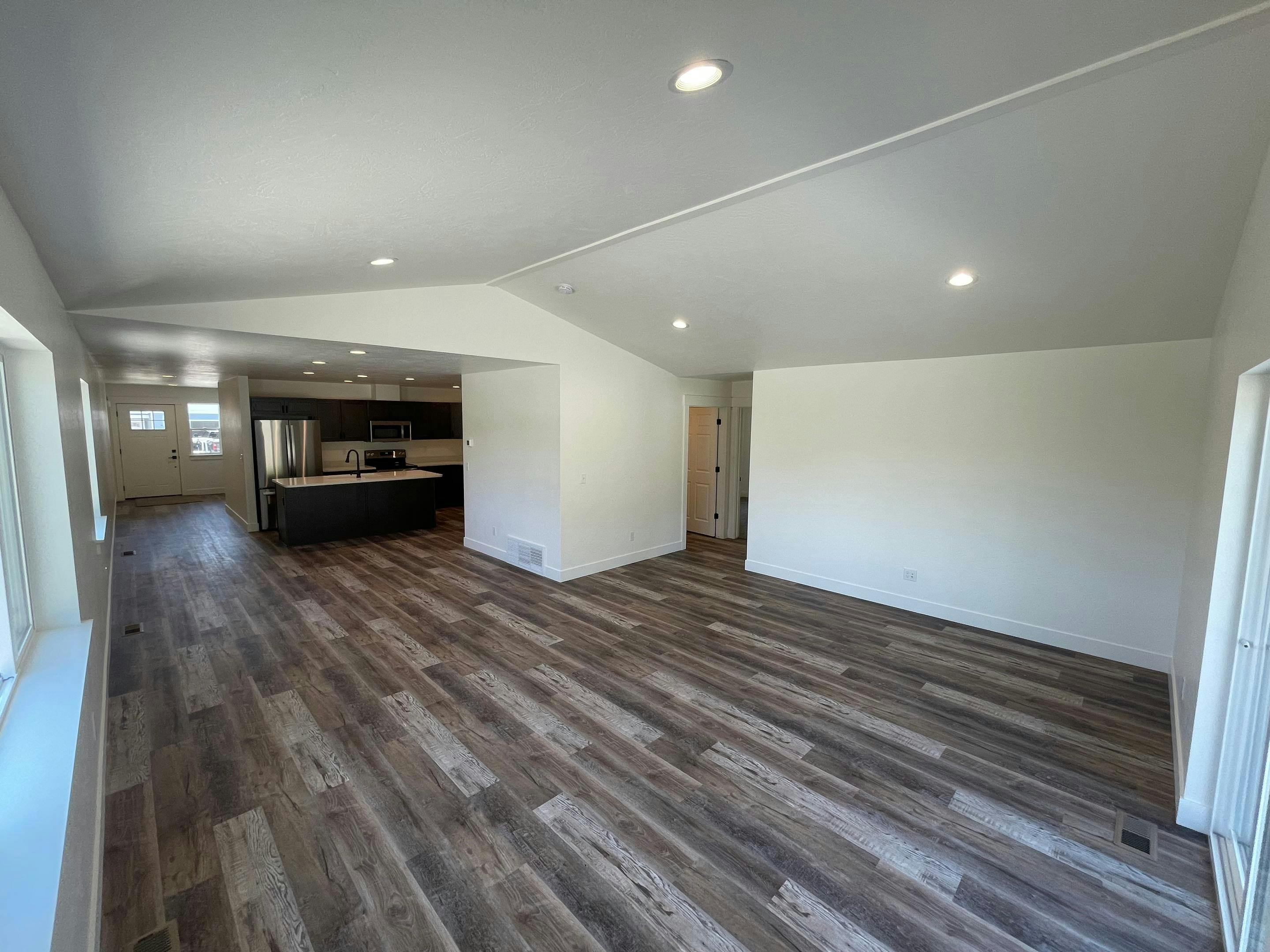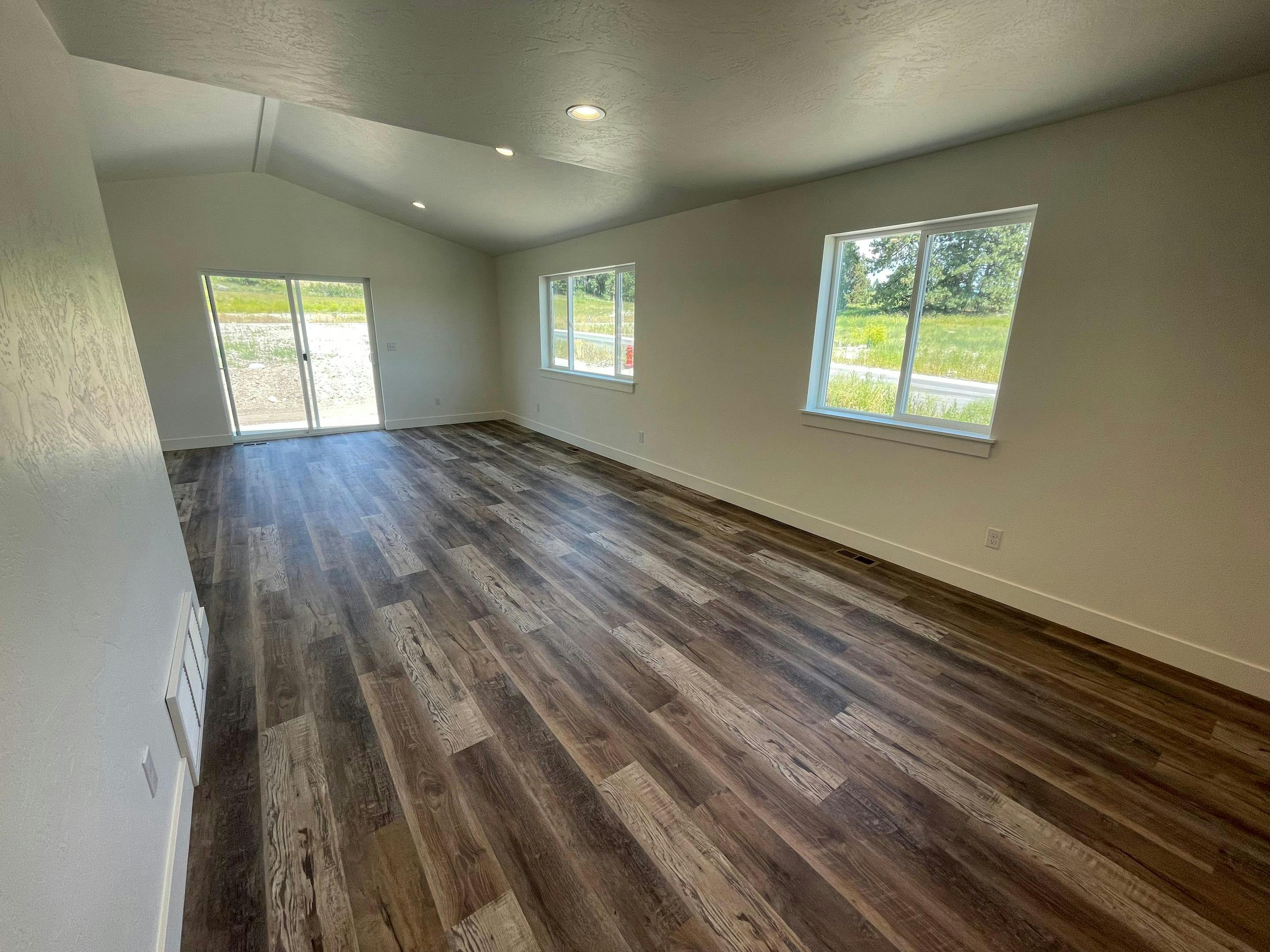 Experience the airy openness of The Lamberson with its open-concept design seamlessly connecting the kitchen, dining, and living room areas. A vaulted ceiling above the living room enhances the sense of space, and the strategically located window in the dining area allows natural light to gracefully illuminate the space, creating an inviting and warm ambiance.