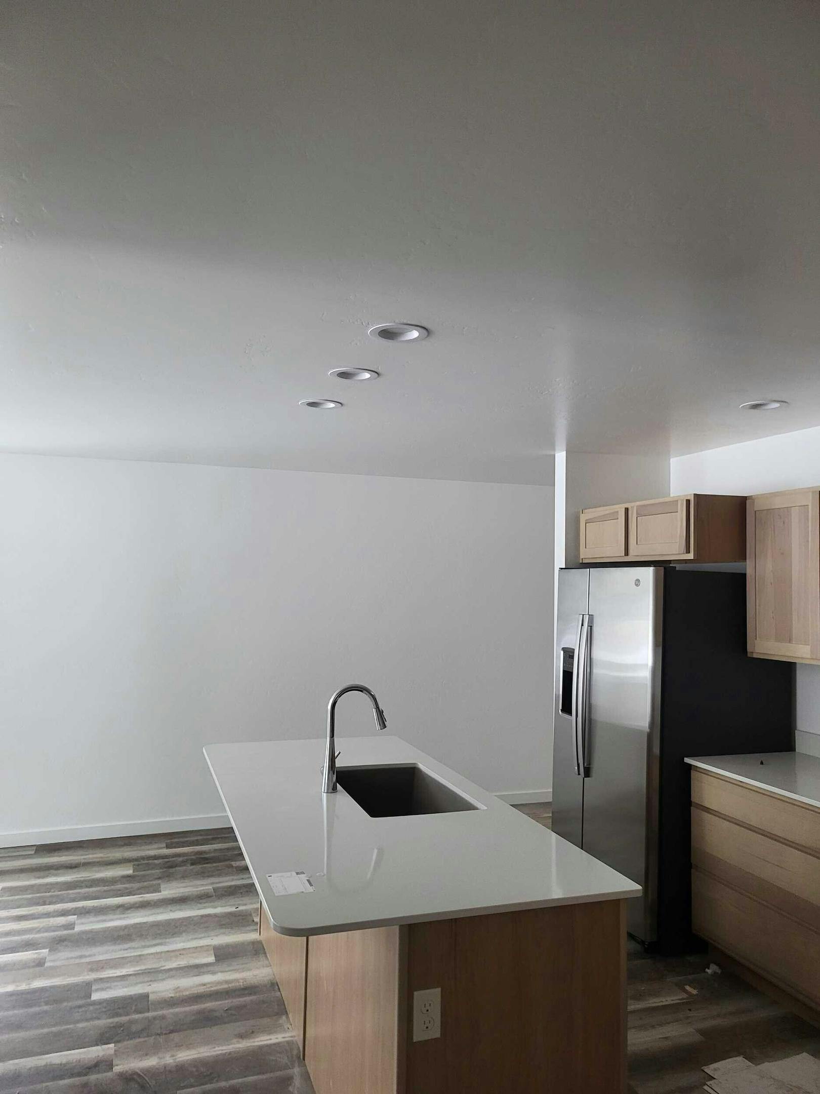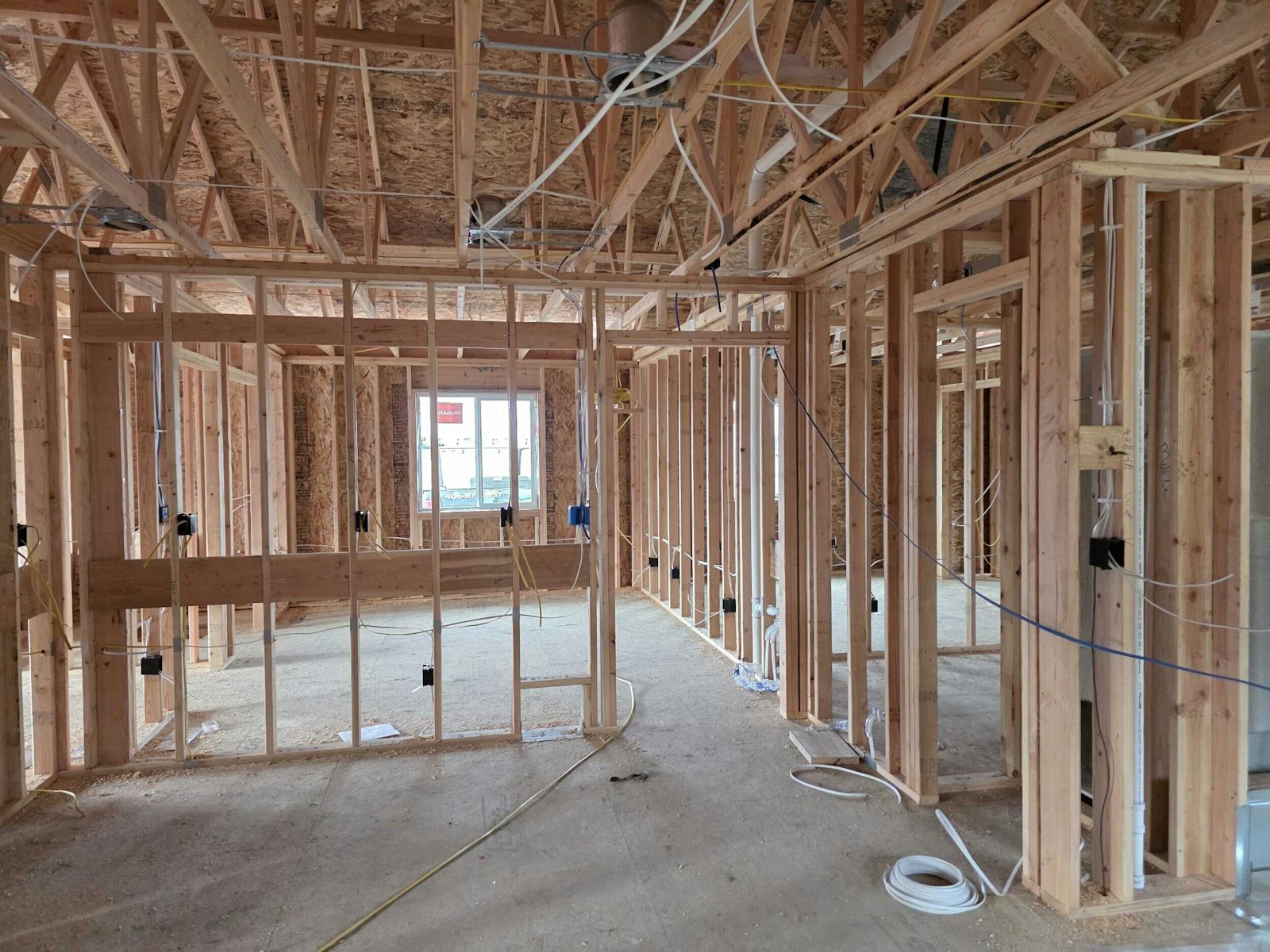 An open-concept great room, dining, and kitchen area.