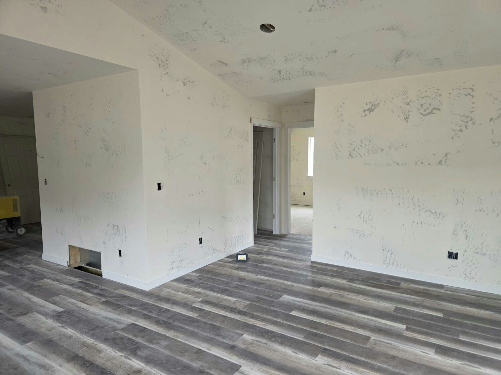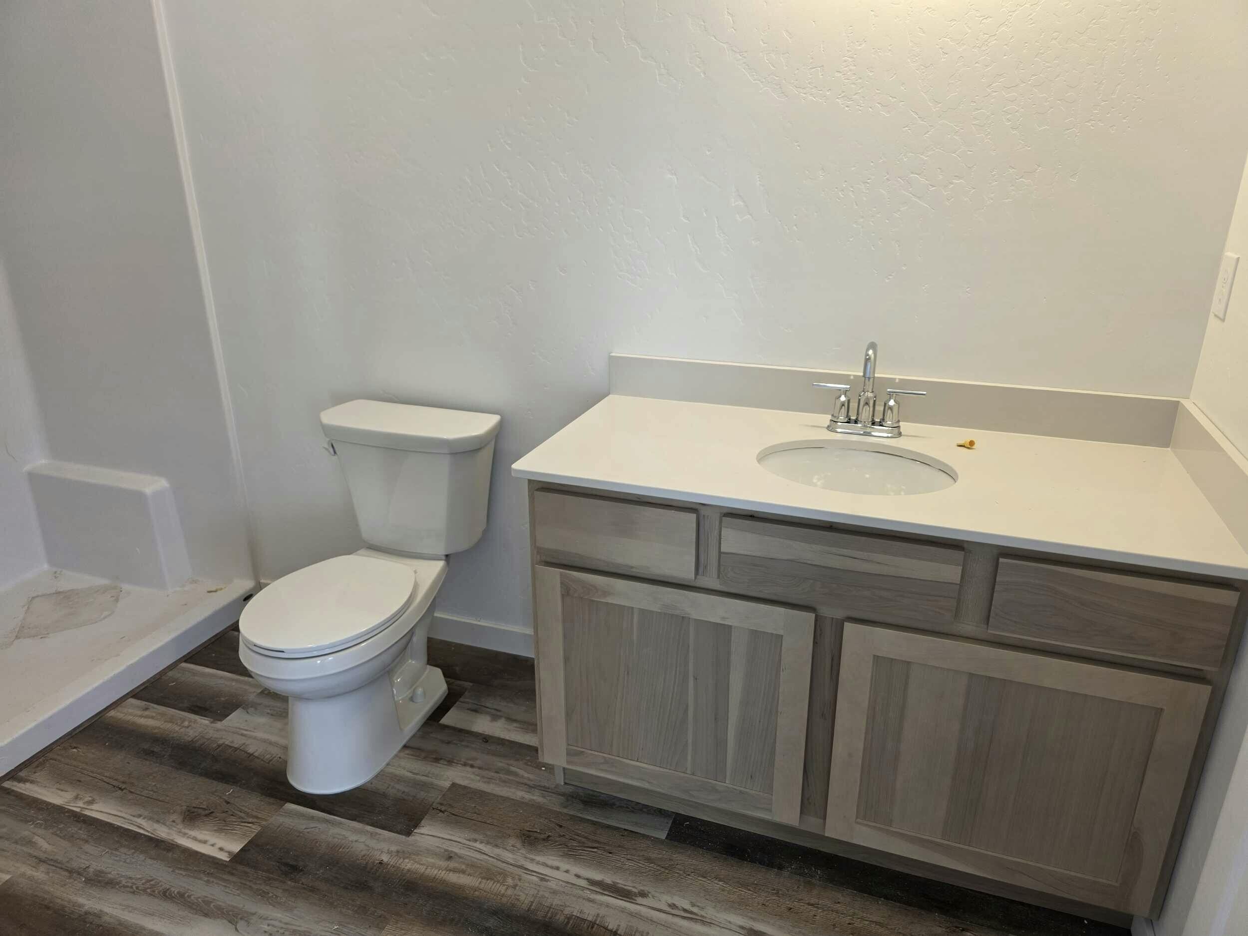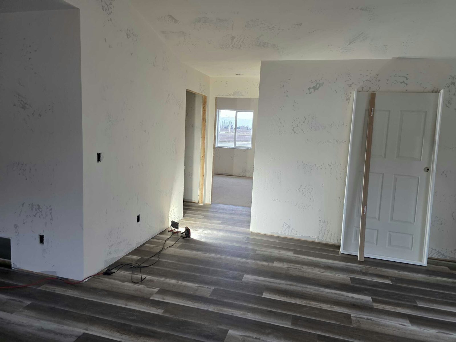 Through the living area, kitchen, and main circulation paths, you'll find a darker-toned SPC vinyl flooring (stone polymer composite). This finish gives the home a grounded, warm aesthetic while providing durable, easy-care performance.